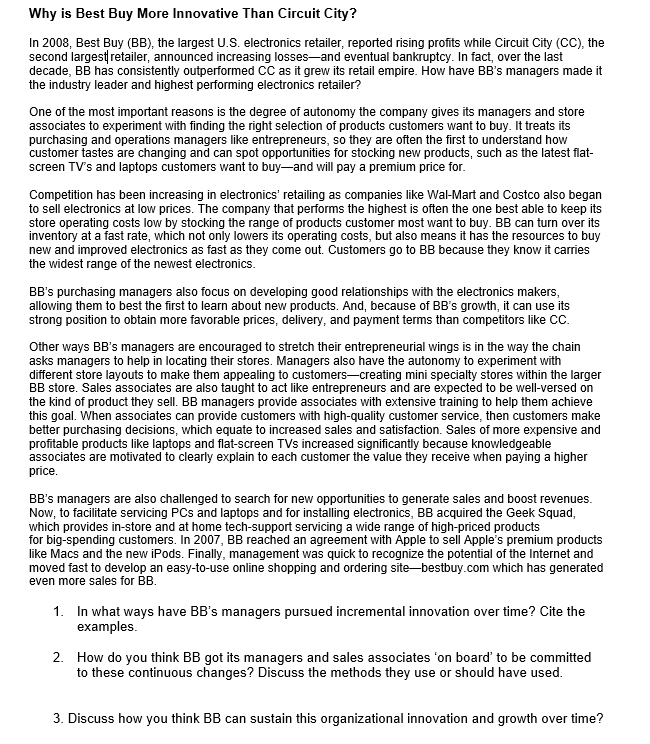 Solved Why Is Best Buy More Innovative Than Circuit City Chegg Com